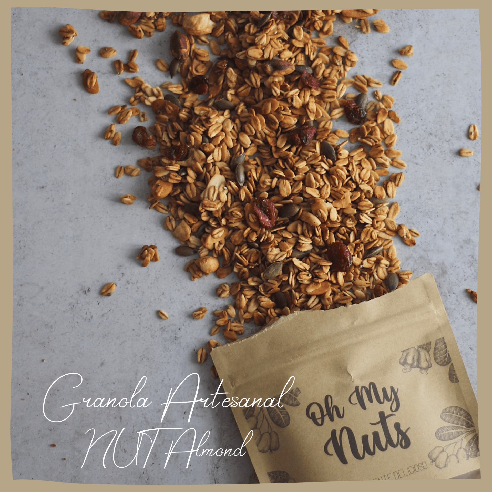 Uma granola premium, cheia de produtos biológicos e escolhidos um a um, pensados em separado, imaginados todos juntos. O puré de maça, com o óleo de coco biológico, envolvidos na aveia biológica e na geleia de agave também ela biológica. Fazem a base que a granola precisa para, posteriormente, ser preenchida com deliciosos pedaços de amêndoa, pistácio e caju. Ninguém consegue ficar indiferente quando prova, ninguém esquece após saboreá-la bem. Sementes que dão o toque nutricional, a canela e a baunilha que são o ponto final. Uma combinação incrível, de produtos, todos eles premium, envolvidos com uma grande dose de amor. Fazendo desta granola artesanal muito especial, cada vez que é saboreada e disfrutada por qualquer um.